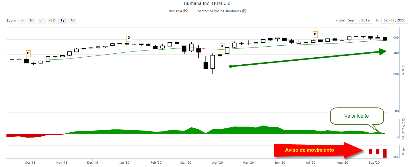 Empezamos nuestro viaje por el mercado americano en el valor Humana Inc que esta semana ha activado las señales de nuestros rastreadores.