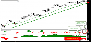 Terminamos nuestro repaso con uno de los principales valores de un sector del que hemos hablado mucho últimamente por su buen aspecto: el químico. Dow Chemical es uno de esos gigantes americanos que tiene toda la pinta de querer seguir tirando al alza. Su sesgo alcista así lo demuestra, y el interés inversor que se ha despertado sobre el valor en las últimas semanas se refleja en el volumen proporcional medio. Hablamos de uno de esos valores que suben a un ritmo superior al de la media del mercado, lo que siempre favorece a nuestros intereses.