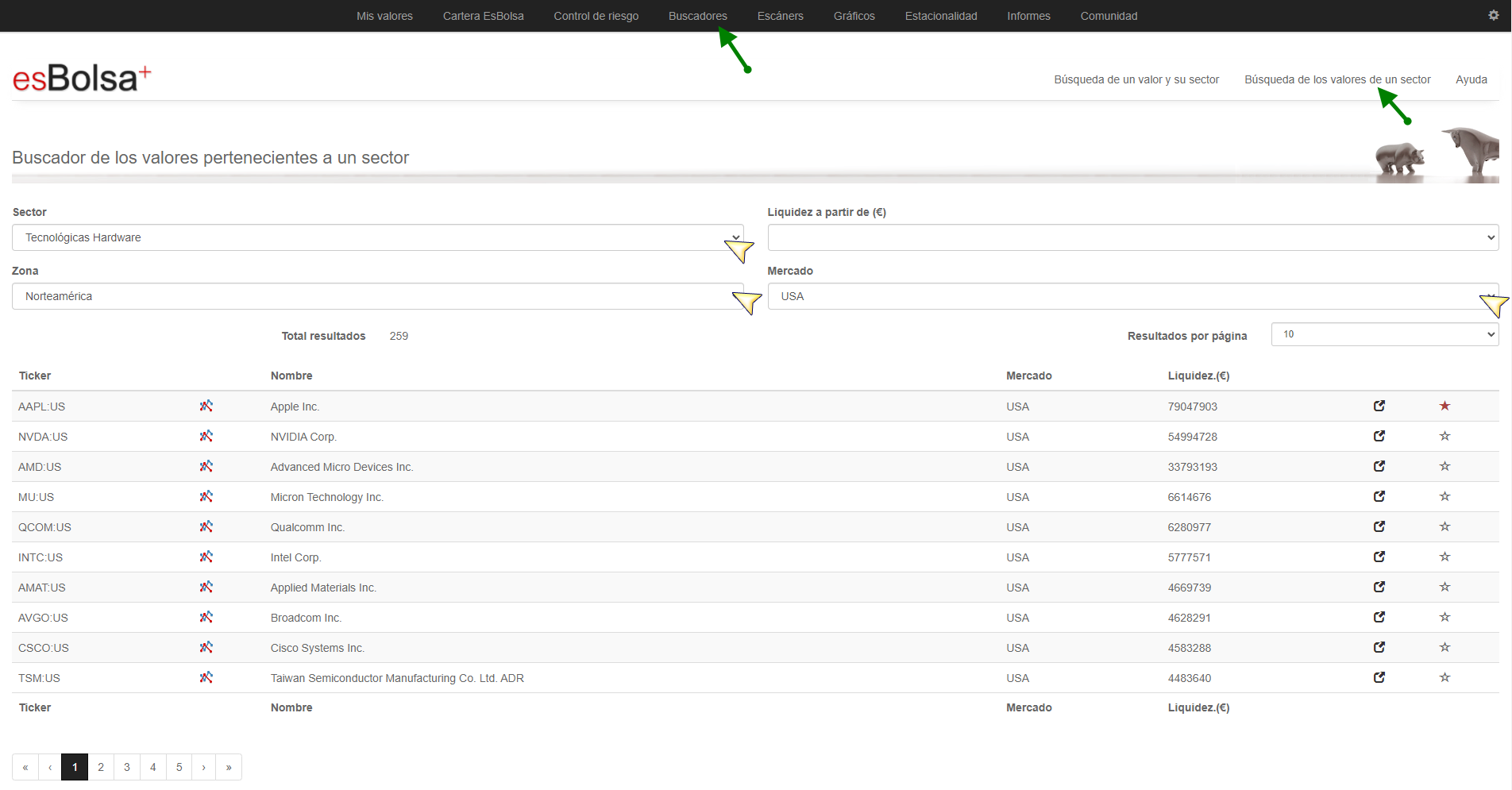 Os dejo a continuación el listado de los 10 valores más líquidos del sector hardware en Estados Unidos. Recordad que los datos completos los podéis encontrar en la herramienta de información sectorial de esBolsa.com.