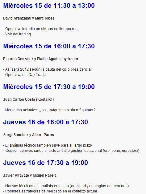 Calendario completo de charlas Trading Fitness en el Stand de Bolsa.com:
