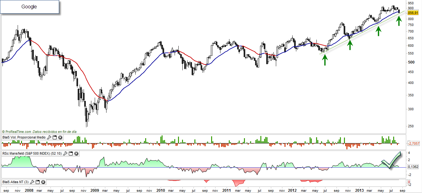 De todos modos, eso fue sólo el comienzo. Desde entonces Google inició un rally que le llevó a cotizar en 747$ en el mes de noviembre de 2007.