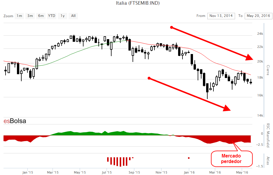 Como sabéis, como inversores solo nos interesa buscar oportunidades de inversión en mercados fuertes y alcistas, y a día de hoy, el mercado italiano dista mucho de ser un mercado favorable para nuestros intereses, de hecho es uno de los mercados más desfavorables para los intereses de los inversores ahora mismo en el mundo.
