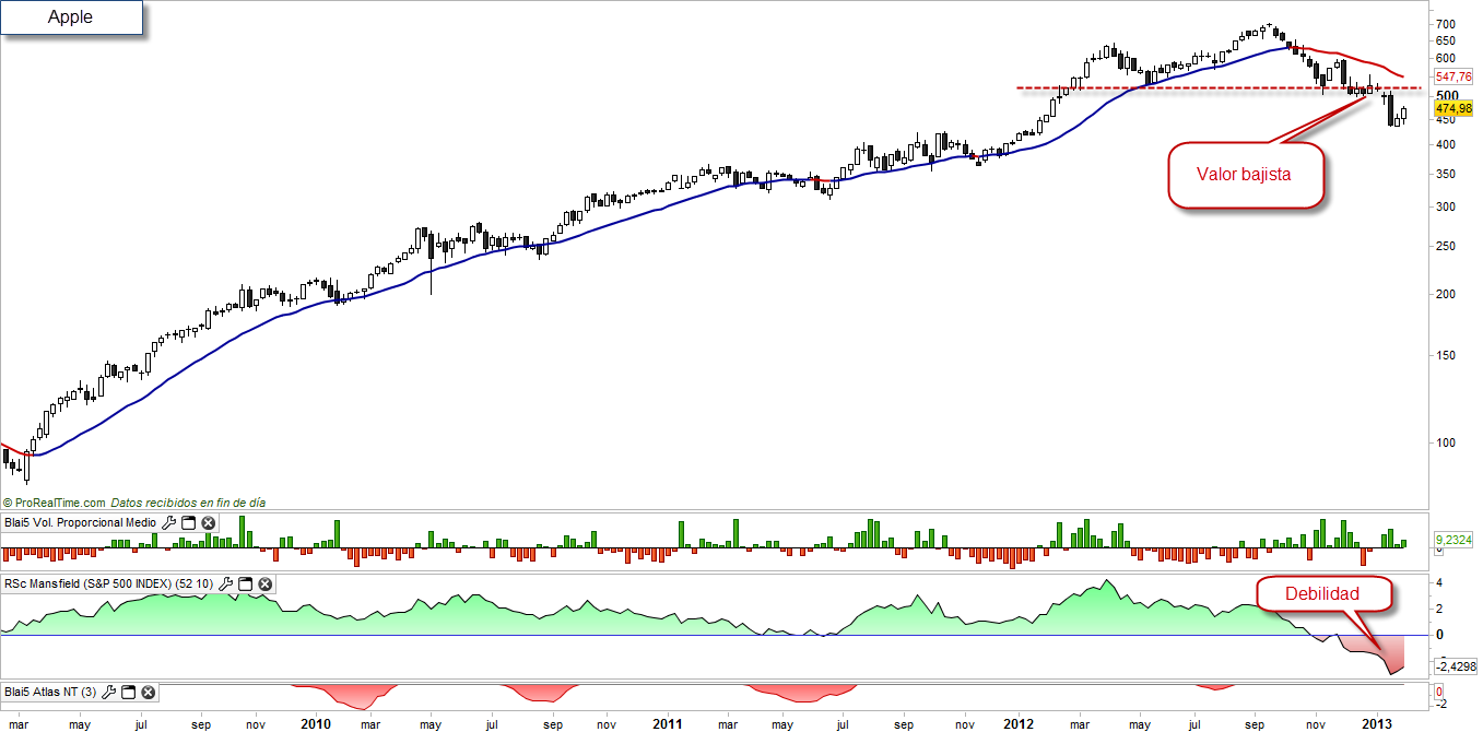 Mi punto de vista sobre este valor lo llevo trasmitiendo desde hace semanas en este mismo blog. Apple ya no es lo que era, y debemos evitar a toda costa tener valores bajistas en cartera como este, puesto que las consecuencias pueden ser nefastas para nuestros intereses.