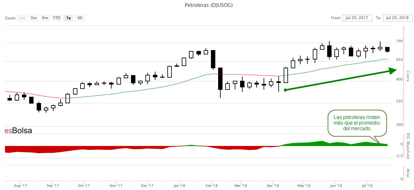 La siguiente imagen muestra el gráfico del sector petrolero actualmente.