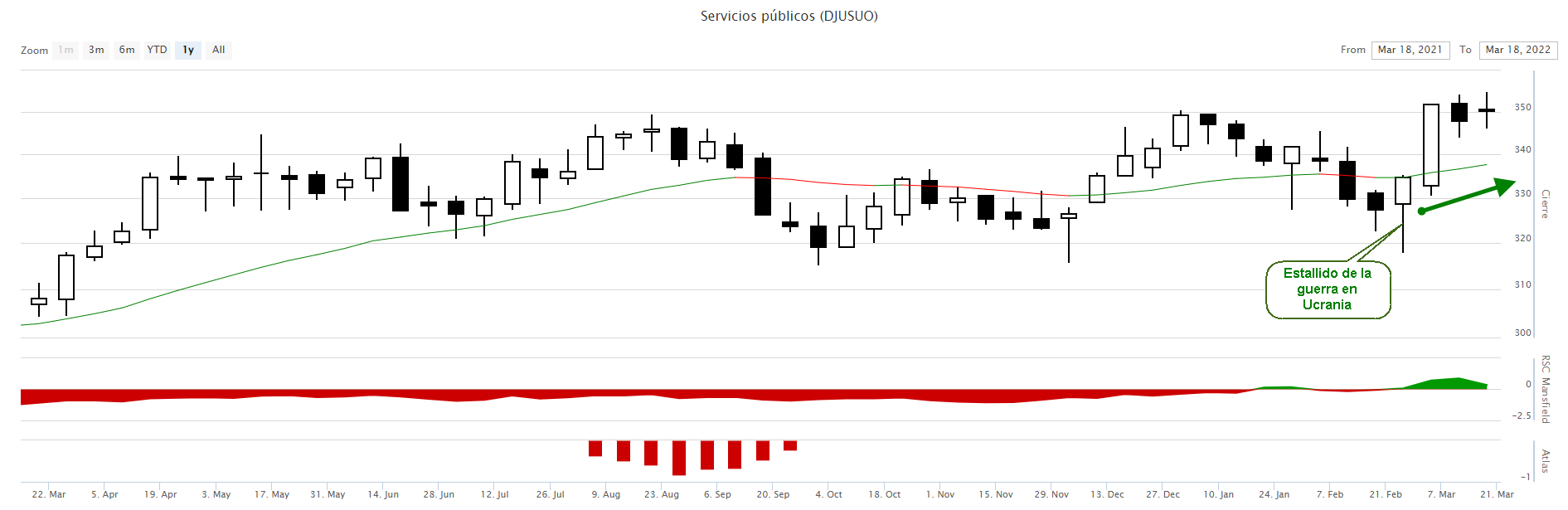 La situación en los mercados durante las últimas semanas está haciendo que los operadores estén haciendo fluir el dinero hacia sectores de corte defensivo, lo que significa que, estos sectores defensivos, están acumulando fortaleza relativa. Esta entrada de dinero en sectores defensivos les está llevando a situarse entre los sectores con mejor comportamiento de EEUU.
