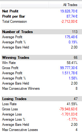 A modo curiosidad, he programado un sistema que localice las jornadas en las que ha habido tan pocos valores alcistas en el mercado español durante una jornada, y que compre a la jornada siguiente. De esta forma podremos saber qué es lo que suele suceder en el mercado después de jornadas tan dominadas por los bajistas como la de ayer.