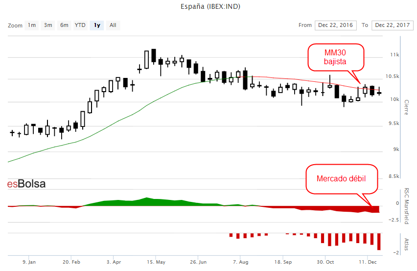 Dicho esto, tenemos las dos premisas básicas, invertir en mercados fuertes y alcistas, pero ¿el Ibex lo es? Ahora mismo NO. Veamos las razones.
