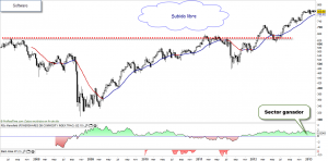 a) Valor en sector fuerte (RSc Mansfield referenciado al S&P500)
